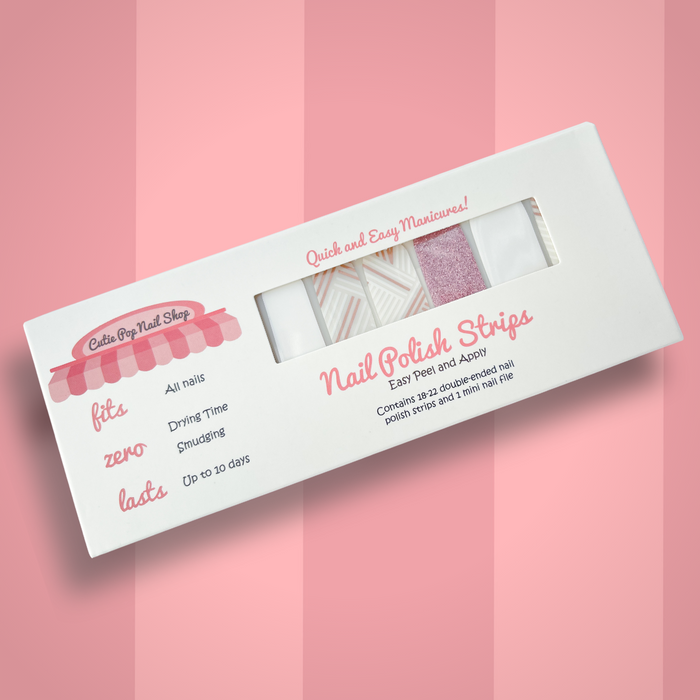 Try out this beautiful and simple pink glitter with white and rose gold stripes! Whether you have a wedding to attend, you're part of the bridal shower, or you are the bride, these nail polish strips will make your manicure just PERFECT!