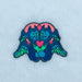 This pin is approximately 1.7 in (4.5 cm) wide. The pin has hard enamel with glitter accents, black nickel plating, and two pin posts with rubber clutches.