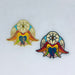 This pin is approximately 2 in (5.1 cm). The pin has hard enamel and two pin posts with rubber clutches. It is available in gold or black nickel plating.