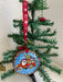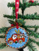 Round-shaped wooden log Santa with a reindeer and 2 snowmen ornament for Christmas/Holiday Season