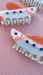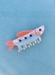 This claw clip features a colorful sardine made of sheeny pink and blue highlights.