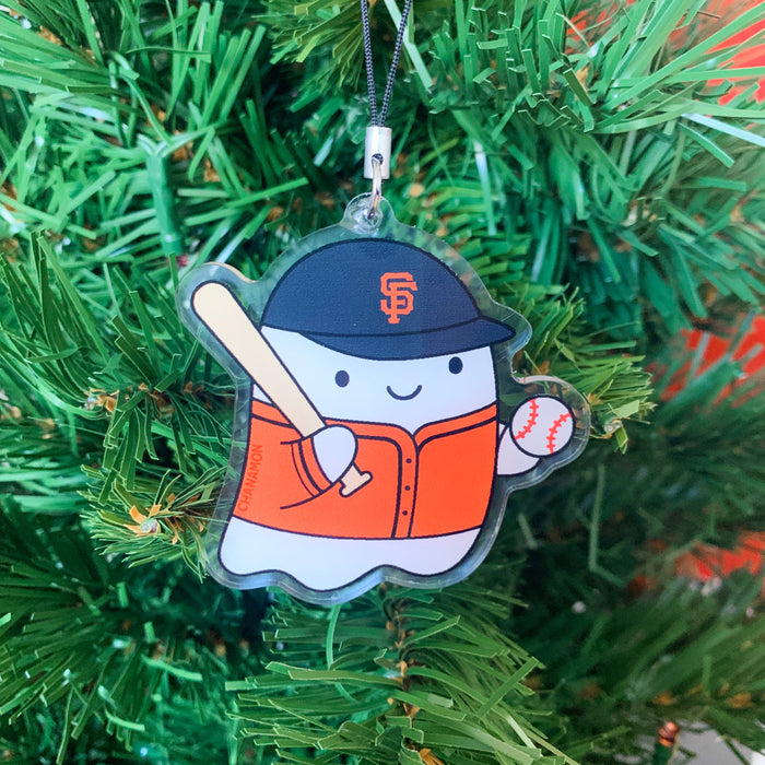 Each ornament comes in beautiful clear packaging with shimmering crinkle filler, perfect for gifting to any San Francisco baseball fan.