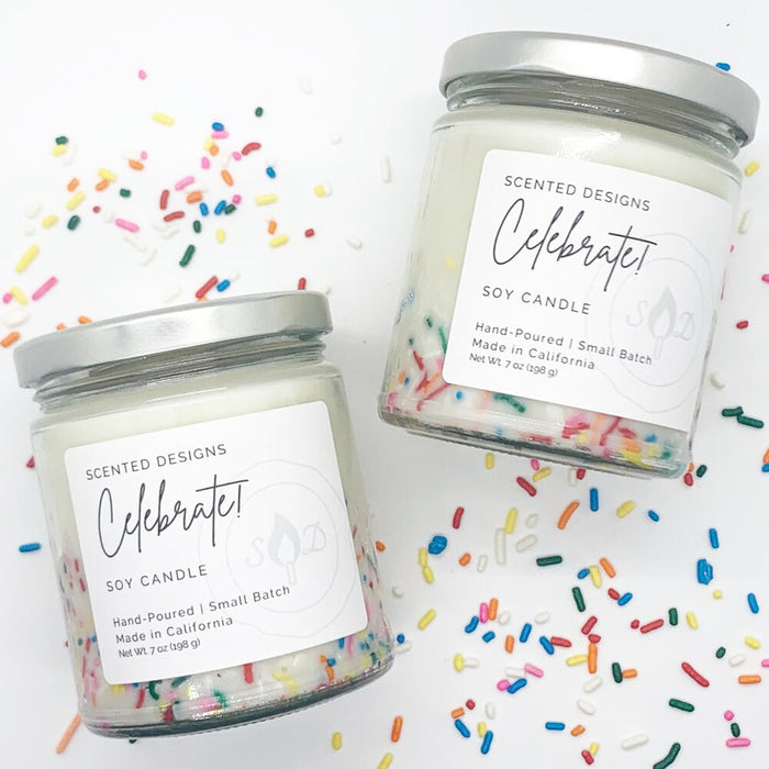 • Celebrate: Celebrate any occasion with this delightful candle featuring colorful rainbow sprinkles and a mouth-watering birthday cake scent. Enjoy top notes of buttercream and vanilla bean over base notes of steamed milk & honey and get ready to party. Infused with natural essential oils. Phthalate-free. (Prop 65 Warning: This fragrance contains Beta-Myrcene, a naturally-occurring compound in many herb and plant oils, including rose.)