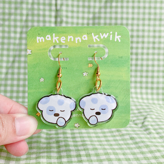 original earring designs printed on and cut from 100% recycled acrylic sourced from material destined for landfill and incineration - gold hooks - resin finish on the front of each acrylic piece - hypoallergenic + lead and nickel free