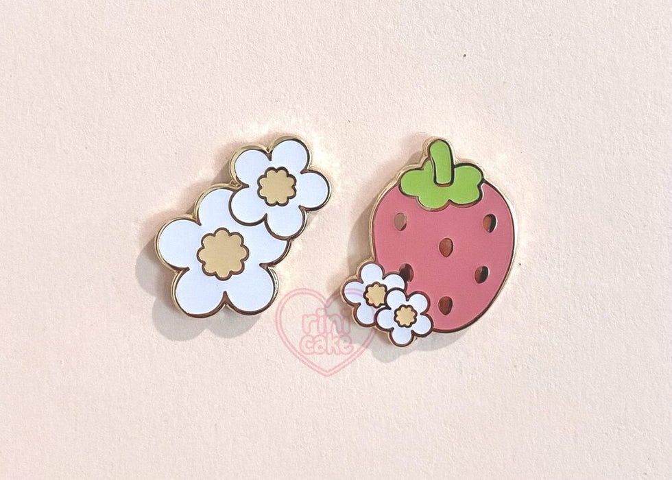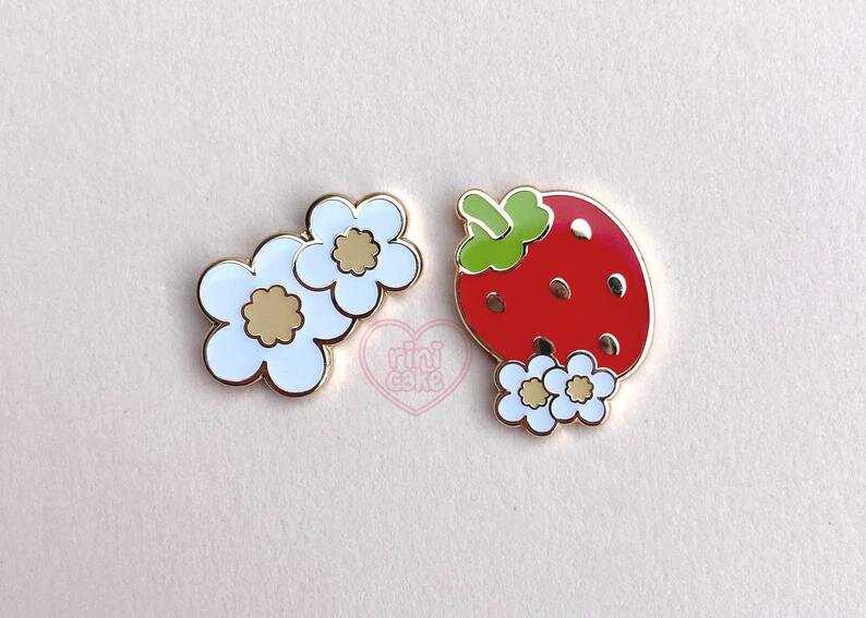 Each pin measures about 0.75". Choose between two colors for the strawberry pin: pink or red