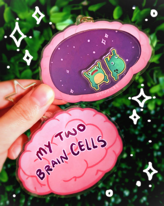 Click to expand Tap to zoom Two Brain Cells Charm by Derptiles Sold out $15.00 | / 1 2 3 4 5 6 7 8 9 10+ Quantity Quantity Sold out Sometimes we only have two brain cells left. And they are frogs. In space. This 3-inch, double sided, shakeable charm comes with a star-shaped metal clasp.