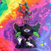 This acrylic keychain is 2.5 inches (6.3 cm) on the longest side, double-sided with the same print on both sides; it has a gold star clasp.
