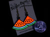 "They thought they could bury us, but they didn't know we were seeds." Show your solidarity with these 1-inch red, white, and green watermelon slice earrings. Laser-cut from black acrylic with hand-painted accents, USA-made surgical stainless earwires with gold-plated accents.