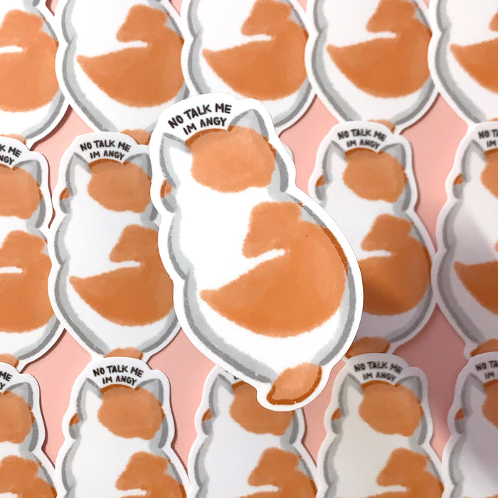 Click to expand Tap to zoom [WATERPROOF] No Talk Me I'm Angy Angry Cat Meme Vinyl Sticker Decal by Parasol Paper Co Save Liquid error (snippets/product-badge line 32): Computation results in '-Infinity'% $3.00 | / 1 2 3 4 5 6 7 8 9 10+ Quantity Quantity Add to cart This item is a recurring or deferred purchase. By continuing, I agree to the cancellation policy and authorize you to charge my payment method at the prices, frequency and dates listed on this page until my order is fulfilled or I cancel, if permitted. Approximate size: 2.3" x 2.7". Matte finish with UV protective laminate