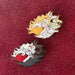 These pins are approximately 1.5 inches wide; with two pin posts with rubber clutches, and hard enamel. They are available in black nickel or gold plating.
