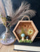 The Wren shadow box features a gold moon phase, greenery, and white flowers that are layered with resin and 2 mushrooms painted in Sage and Black that are surrounded by moss for a witchy cottagecore vibe.