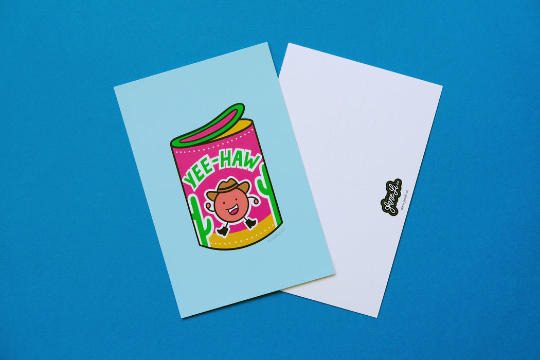 Yee-haw, partner! Whether you love haw flakes, country music, or just a good pun, this postcard is the perfect way to add a little quirky personality to your belongings.