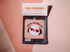 Printed on both sides. Each freshener comes with an elastic string for easy hanging.